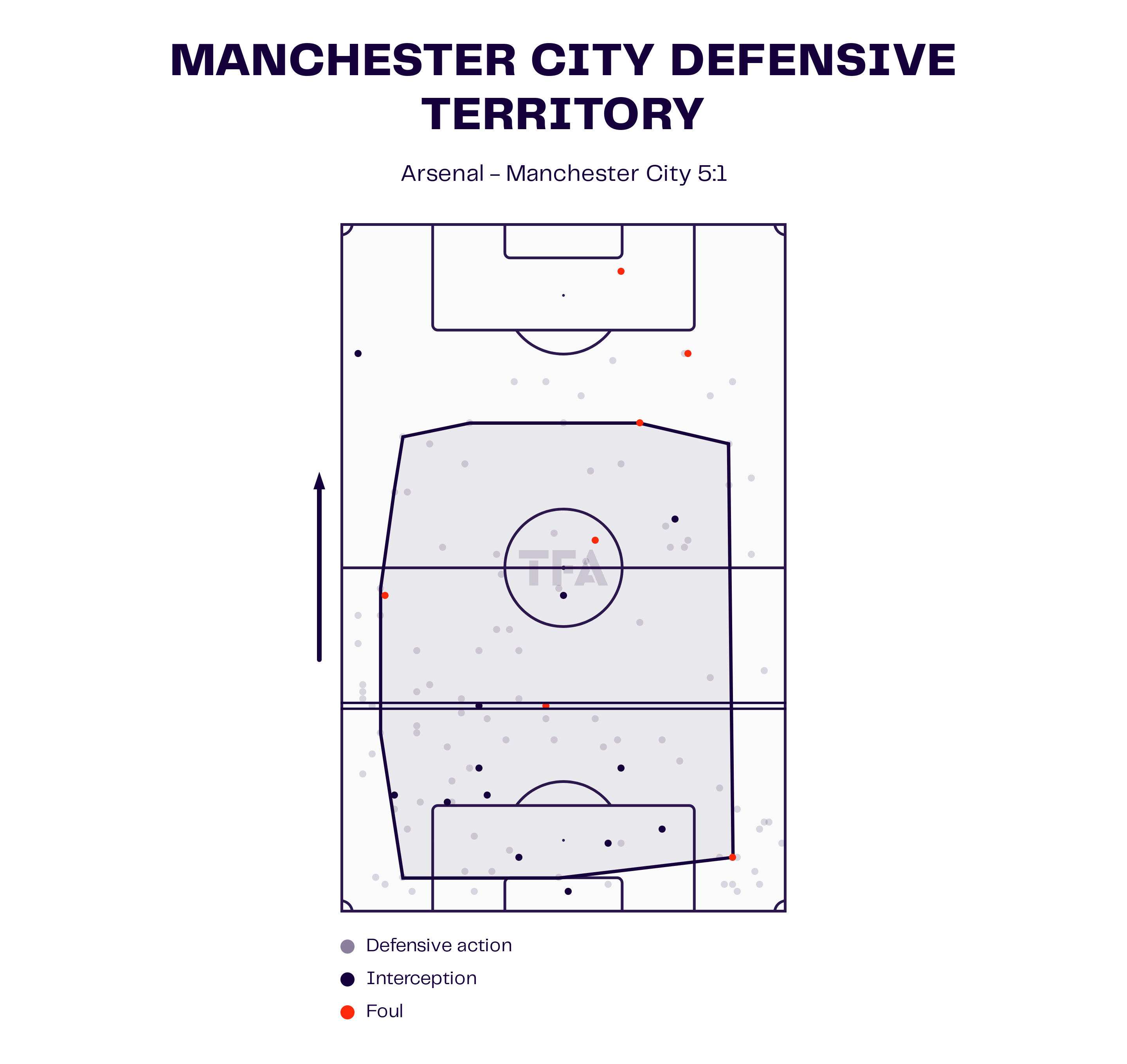 - Failure to Close Down: A failure to close down Arsenal’s players, particularly Martinelli, allowed him the space to score, further showcasing City’s defensive disarray.