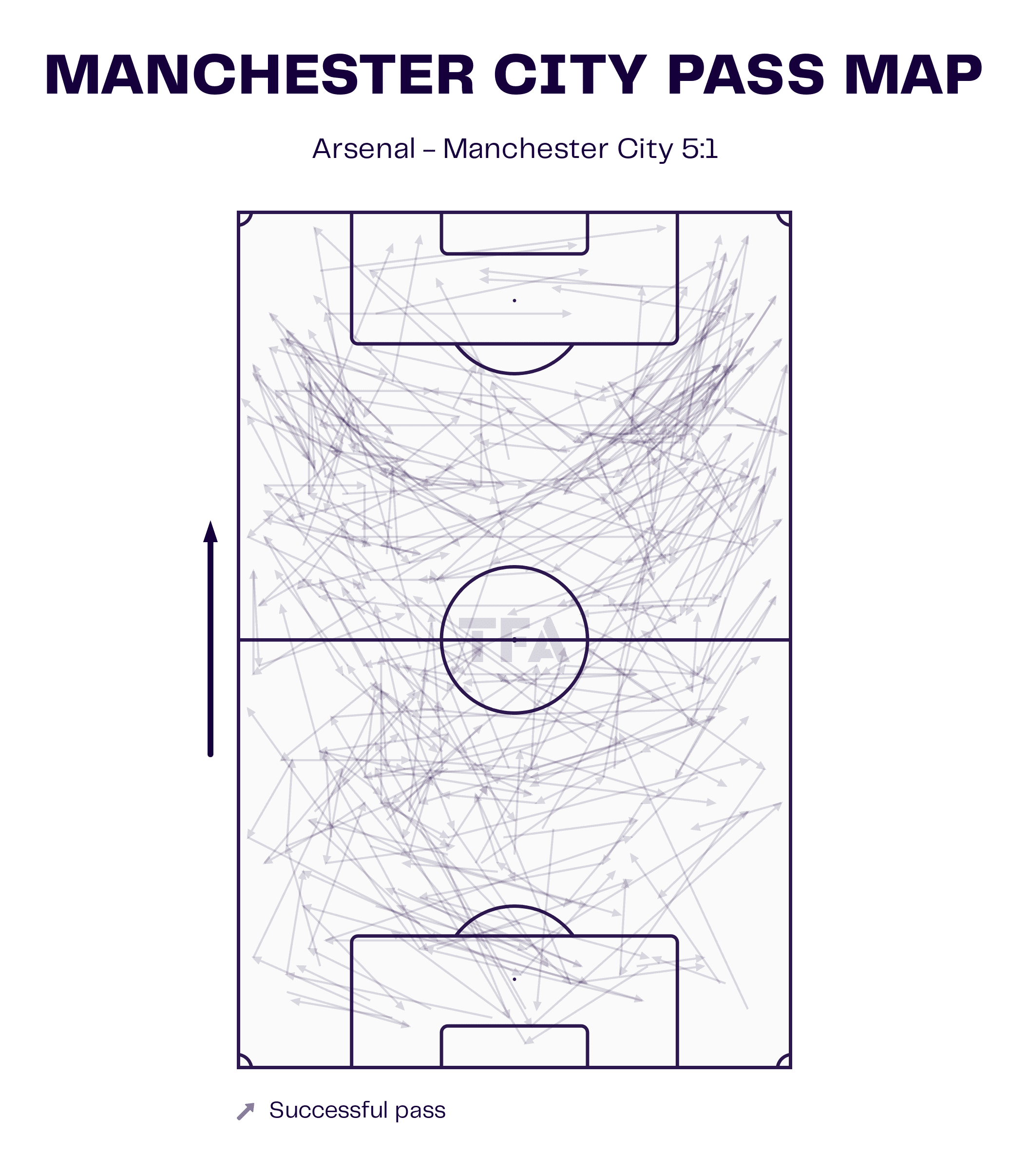 - Lack of Control: Mentions of passing sequences and individual plays suggest that City’s midfield struggled to maintain control of the game, especially when put under pressure by Arsenal’s press.