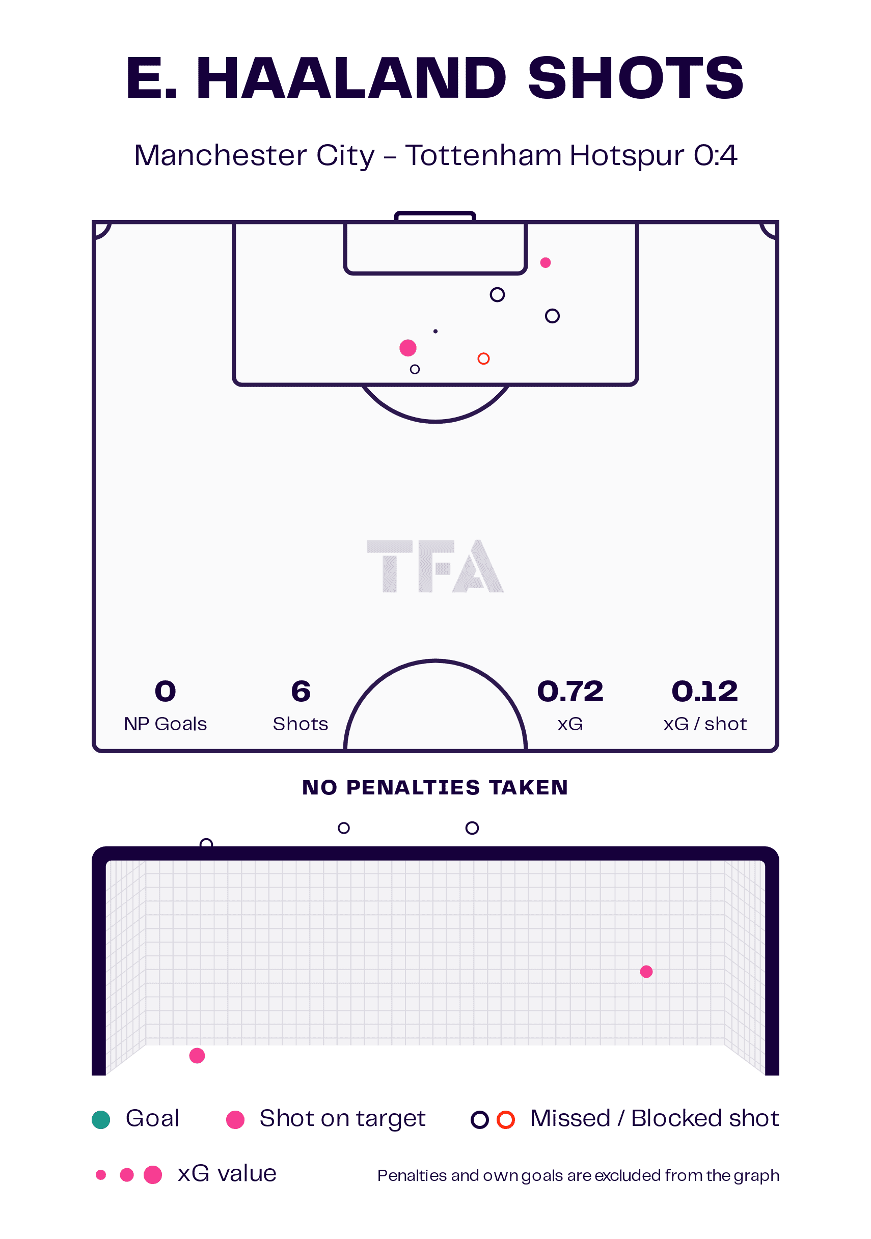 In the Tottenham game, Haaland missed several gilt-edged chances, failing to convert his dominance in the air into goals. He had seven shots in total but only managed to hit the target three times. This profligacy proved costly, as City desperately needed their star striker to capitalize on their limited opportunities.