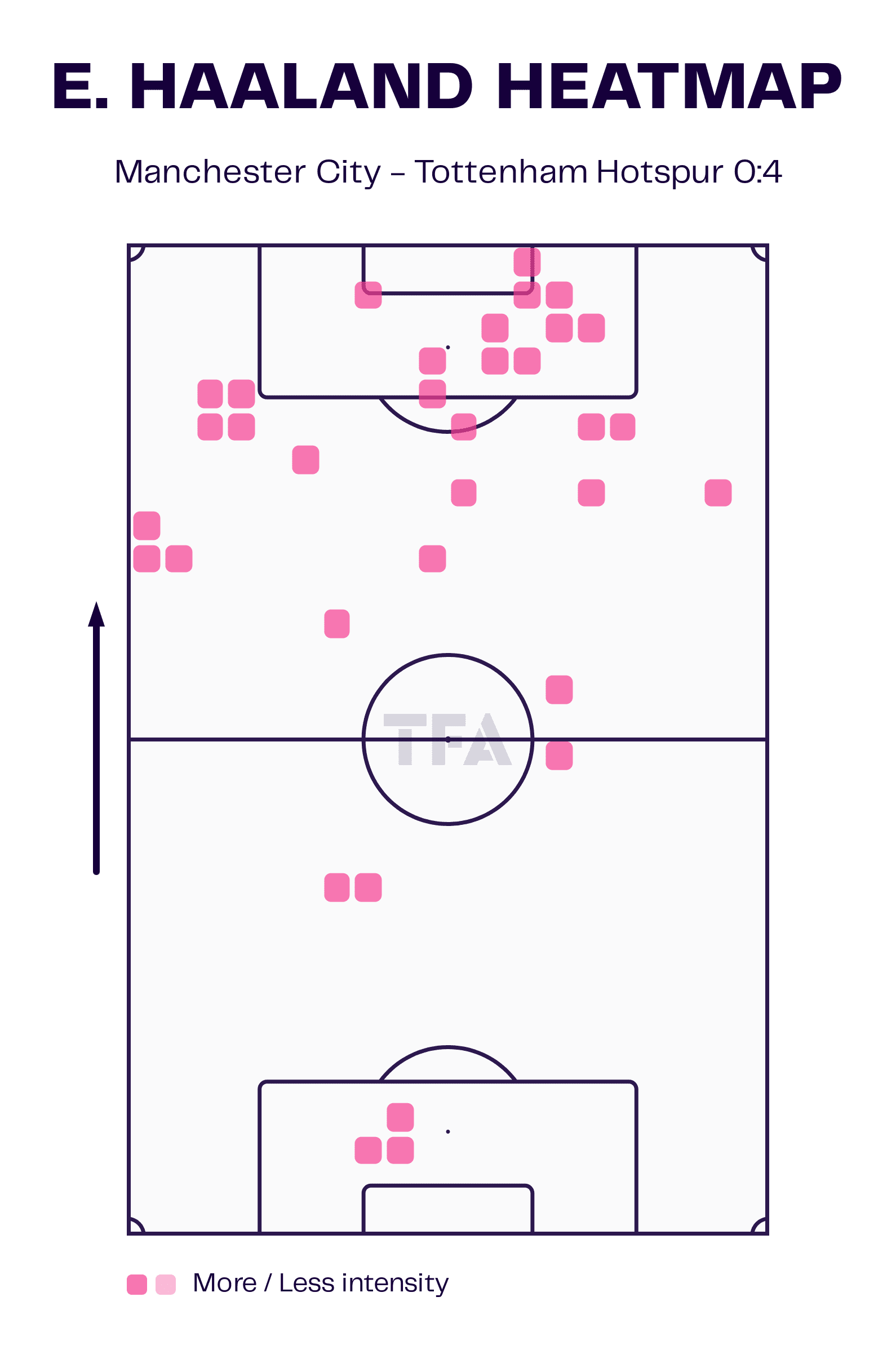 This tactical tweak aimed to maximize central presence, overload Tottenham’s midfield, and exploit Haaland’s aerial prowess with crosses from deep.