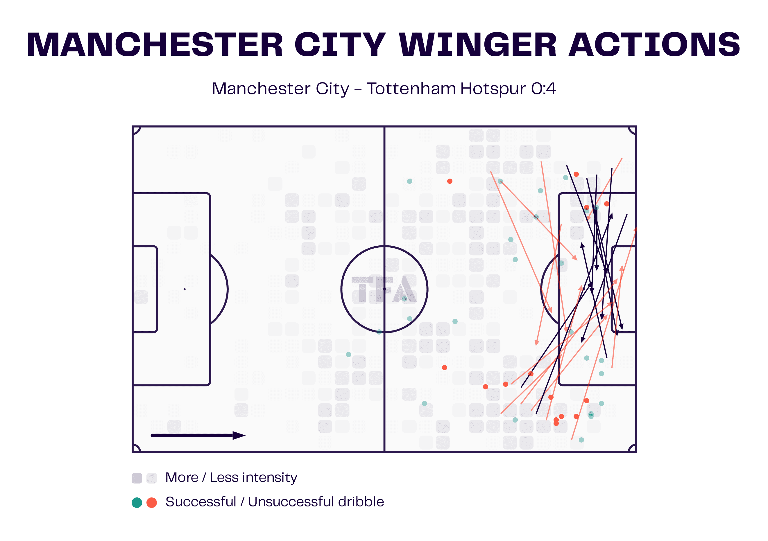 The Tottenham game served as a stark reminder of the importance of traditional wingers in City’s attacking setup. Wingers provide much-needed width, stretching the opposition’s defence and creating space for central players to operate. Their ability to run at defenders, deliver crosses, and cut inside keeps the opposition guessing, preventing them from compacting their defensive structure.
