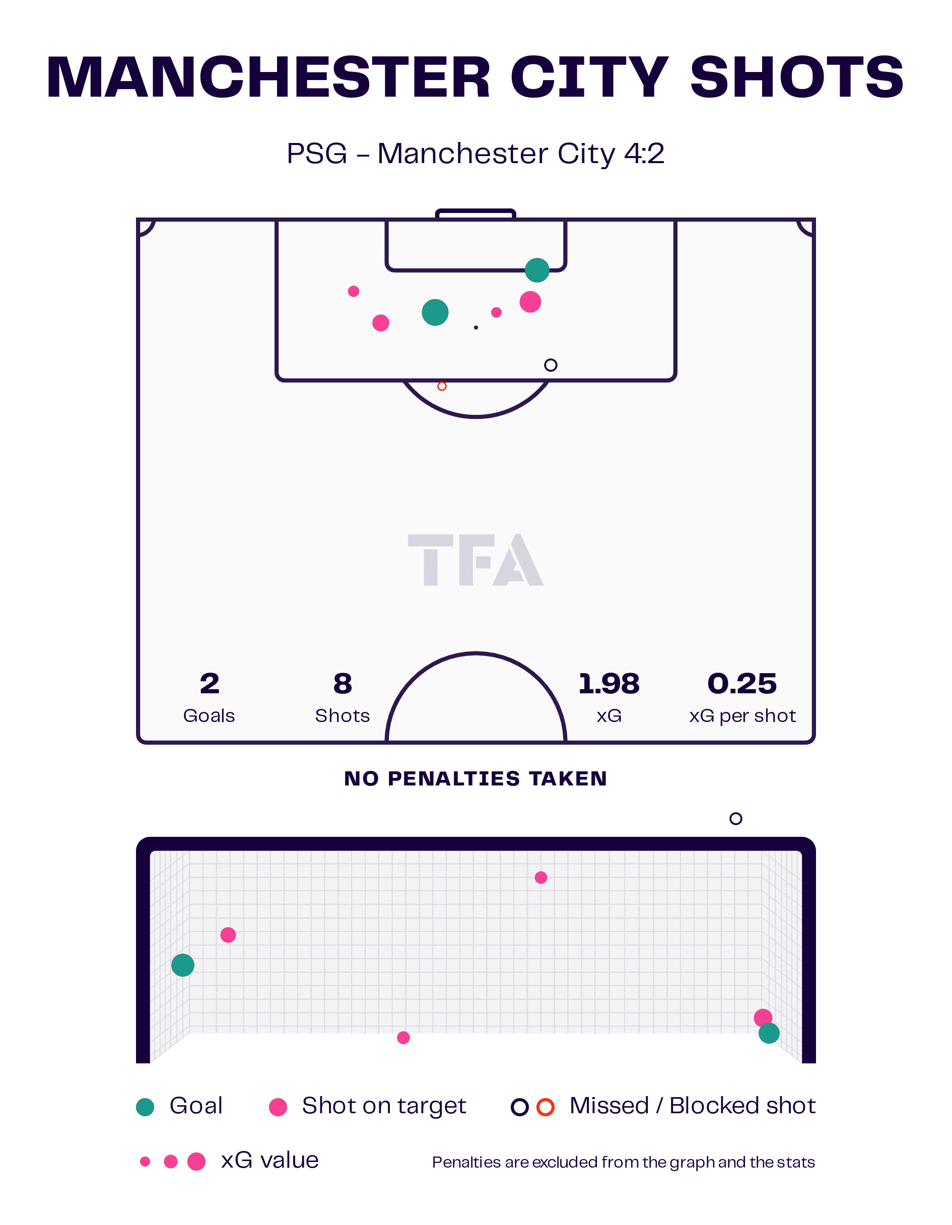 A lack of authority at the back for Manchester City was exposed. The defence seemed to lose their way, and this allowed PSG to take advantage, and get themselves ahead. The team struggled to maintain their defensive shape, and they became vulnerable to PSG’s attacks.